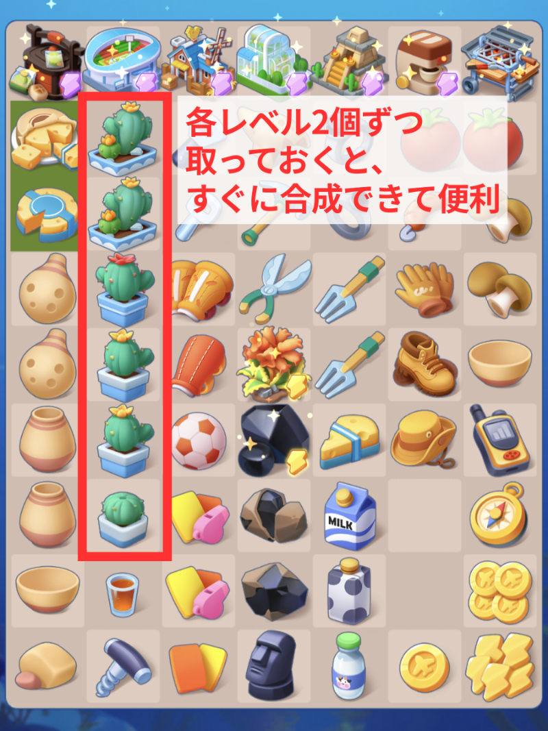 本記事に沿って進めると、ボードがアイテムで埋まりやすくなります。