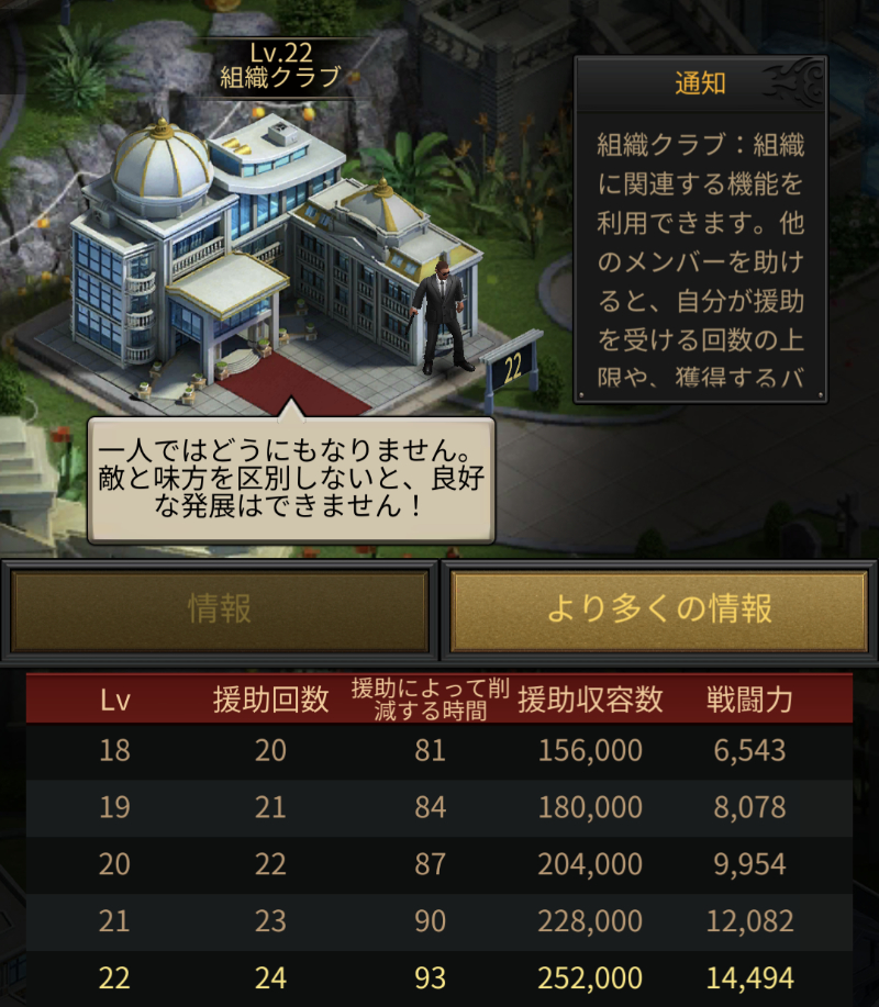 別荘レベルが上がったら、まず組織クラブのレベルを上げるのがオススメです。