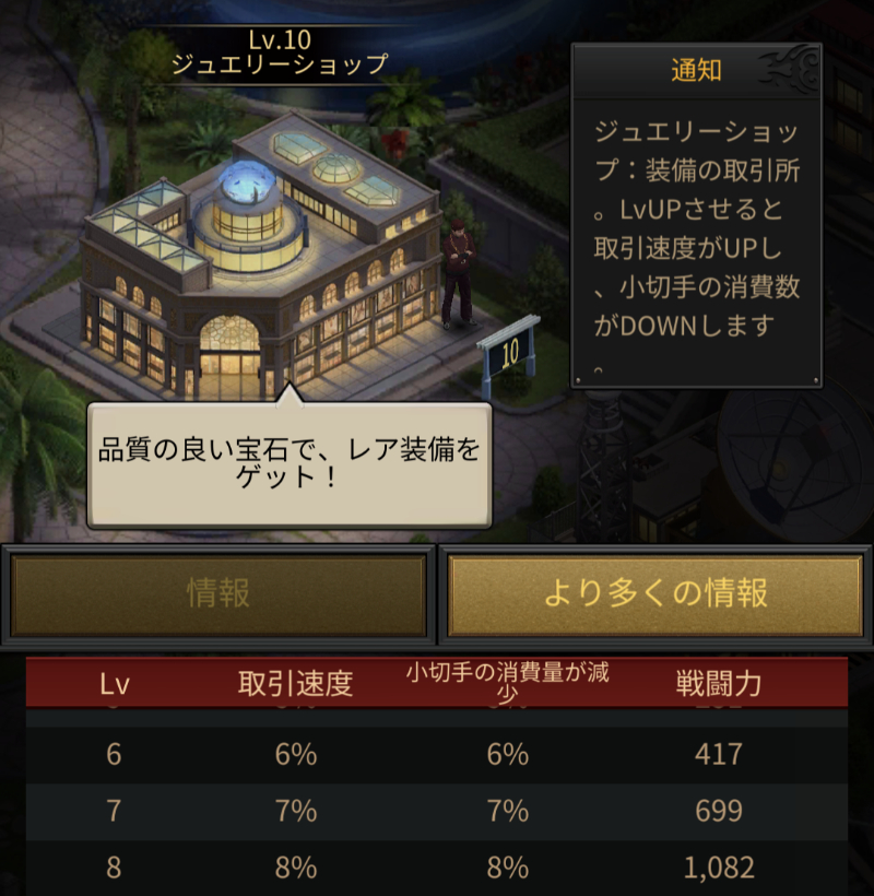 余裕があれば、レストランや投資センターなどの推奨施設も育てて戦力を強化しましょう。